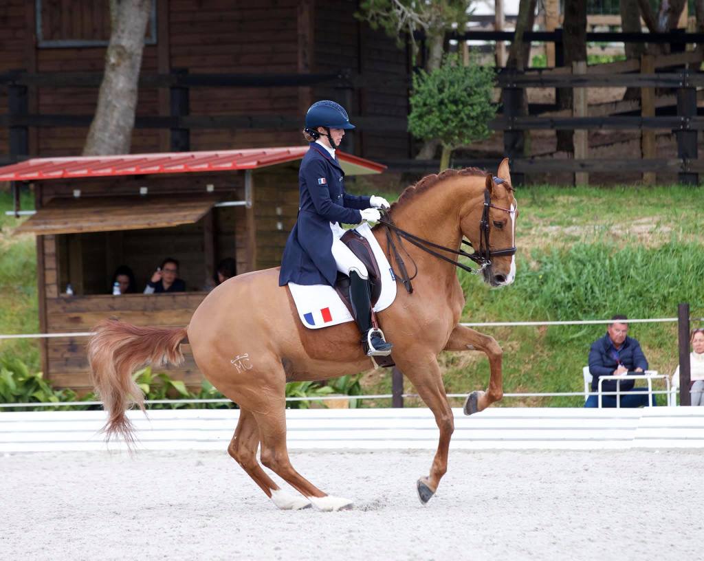 Au sixième rang, on trouve la Française Charlotte Chalvignac-Vesin sur la jument lusitanienne Elice, 11 ans. La cavalière a confié à http://www.dressprod.com que, avec 2 reprises à 69.152 % et 68.234 %, elle est satisfaite des résultats obtenus : » mettre tous les mouvements bout à bout sans fautes demande du temps, je lui fais confiance, je suis déjà très contente de nos moyennes sur ce premier Cascais« .